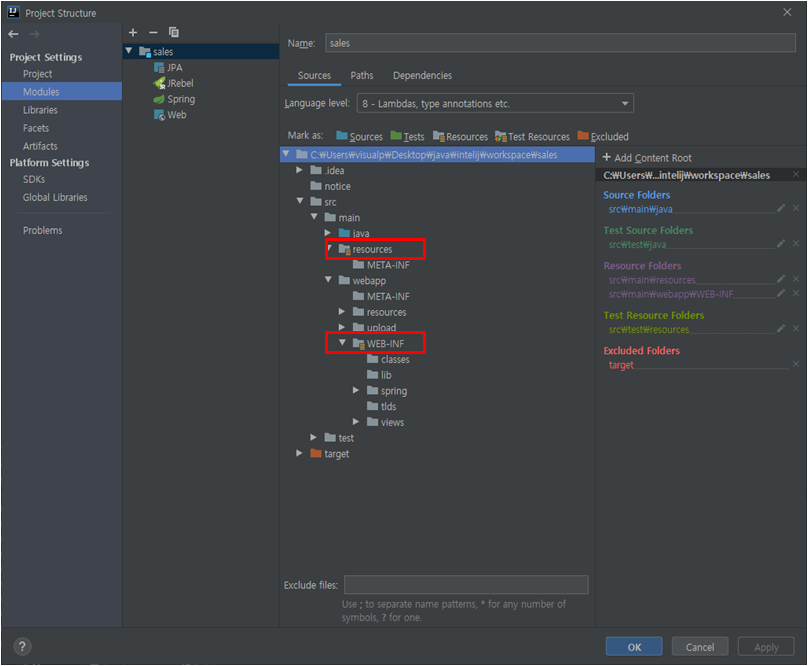 경로에 resources folders에 지정이 되어 있는지 확인 합니다.