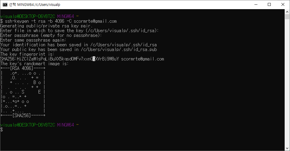 - c/users/visualp/.ssh/id_rsa 메모장으로 open